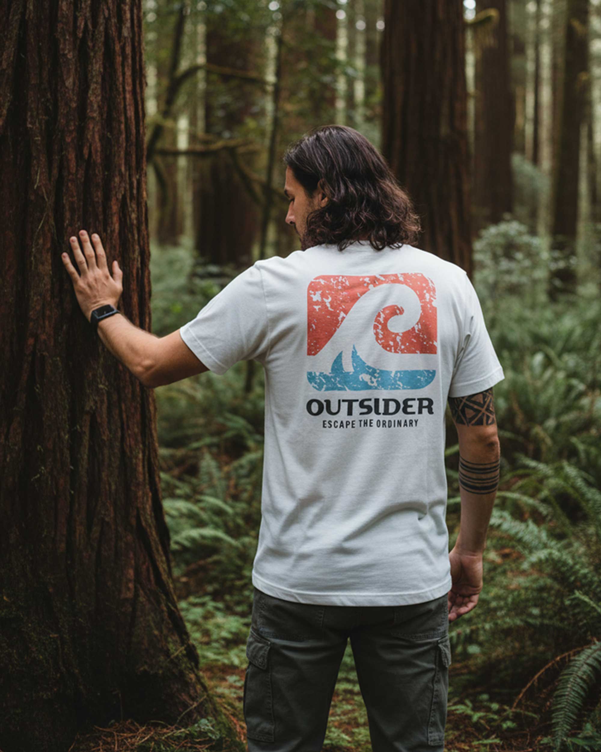 Our Outsider Logo tee - this design sums up what we're all about. Getting outside, loving where you roam. With a little retro nod and a squared off logo. Original and classic, designed to work with your existing wardrobe, and built to last the adventures ahead.